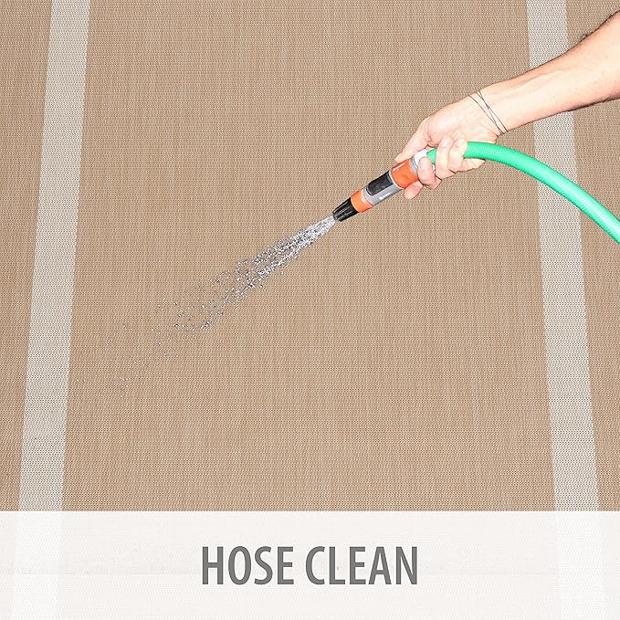 • [ WASHABLE: ] You can vacuum with a vacuum cleaner indoors and you can wash with a hose outdoors. To wash an outdoor rug, spray the surface with a 5-1 mixture of mild dish soap and water and then rise with a hose.