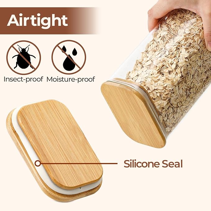 • Airtight Food Jar: The square pasta storage containers use wood lids and silicone sealing rings for a better airtight and moisture-resistant space to prevent the food from getting wet and gain longer freshness time and longer storage time
