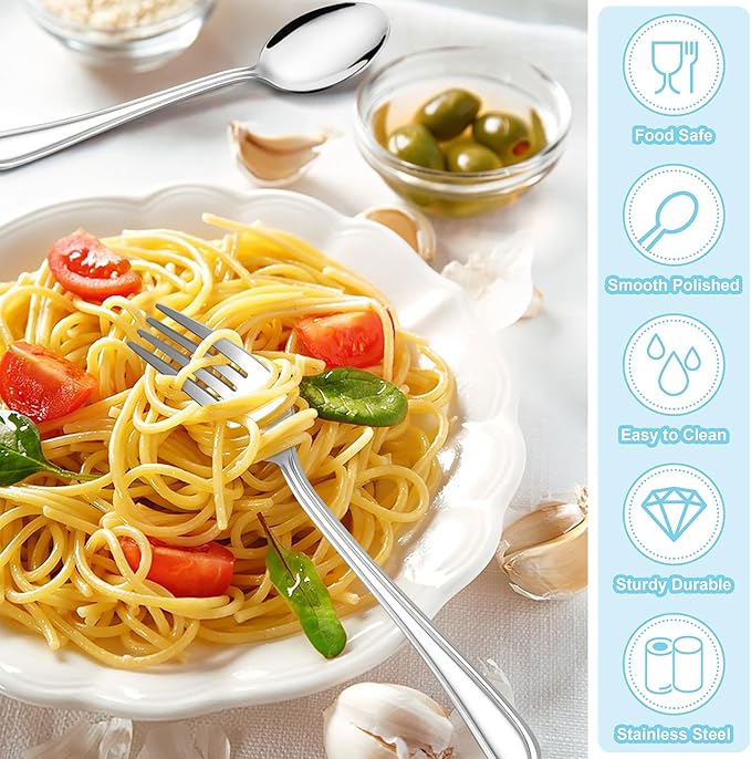 - PERFECT SIZE FOR KIDS: 5.9-inch small spoons and small forks are suitable for children's hands and mouths, The smooth round handle that conforms to ergonomics provides a balanced and comfortable grip, Allowing kid to use them easily and eat independently, The perfect size is suitable for children to start using tableware, And it is also suitable for putting in the lunch box