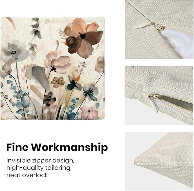 - 【Square Pillow Covers Size】 Watercolor flowers pillow case set includes 2 pcs of farmhouse couch pillow covers (NO Pillow). Home decor farmhouse pillow covers measures 18x18 inch/ 45x45 cm. All the watercolor floral decor throw pillow covers have a hidden zipper. It is easy to insert or remove the pillow core to replace the spring pillowcase. Easy to clean and wash, durable and not easy to damage.