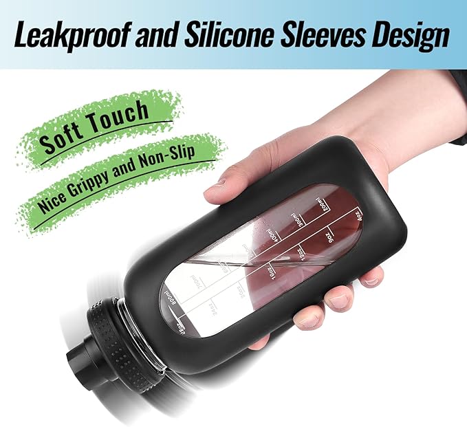• EASY CLEAN AND CLEARïžšfood-grade glass is easier to clean, there is no need to remove the silicone sleeve for cleaning, our glass water bottle will retain their clarity after washing, hand washing is recommended as the dishwasher (place cap on top rack) may affect the appearance of bottle print