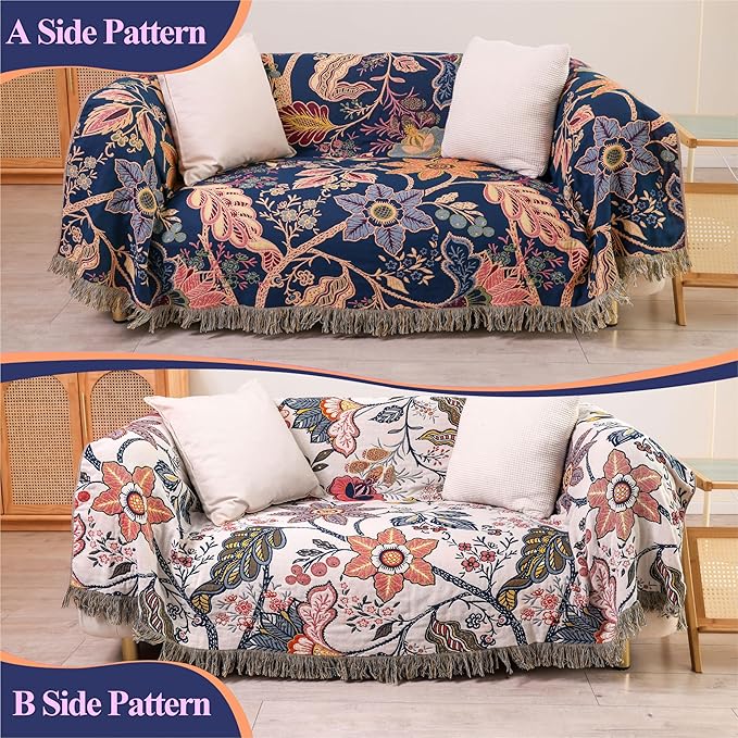 • DOUBLE-SIDED DESGIN - Give a fresh look for your sofa or bed in a few seconds, no worries about the front side or back side.You can use it as a sofa throw, a bed spread, a blanket or a decorative tablecloth and so on.