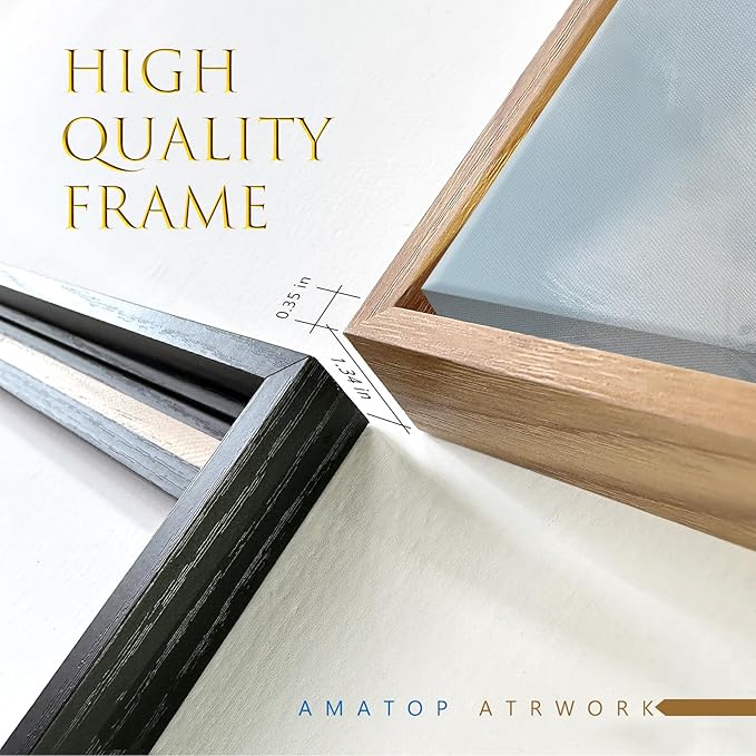 - β€Frame Details: The large beach decor wall art is framed in a modern, float frame with natural woodgrain coloring and dramatic depth, the frame measures 1.26 in. wide. The frame is carefully crafted to create the illusion that the canvas is floating, adding depth and dimension to your ocean wall art.