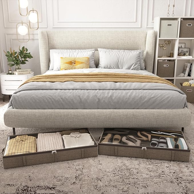 - ⭐️【LINEN HIGHT QUALITY MATERIAL】- Underbed storage containers are made from high-quality, odorless linen fabric, durable and breathable, can store out-of-season clothes during long-term storage. The sides are strengthened with cardboard inserts that hold their shape and have a folding, cardboard-reinforced bottom.