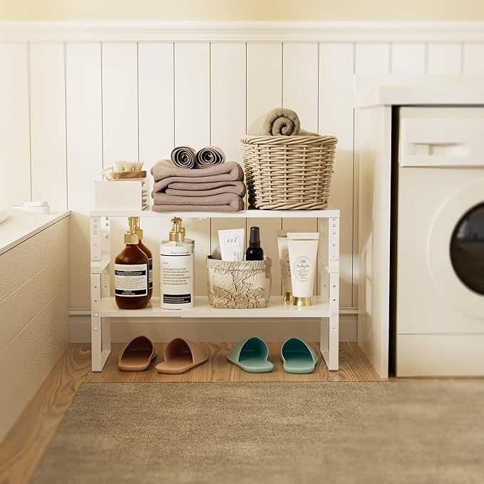 Expandable,Stackable Spice Rack,Seasoning Organizer and Storage,Spices Jar Racks for Cabinet,Countertop, Metal Pantry, Cupboard,Laundry Storages,Heavy Duty(2 Packs/Medium/White)