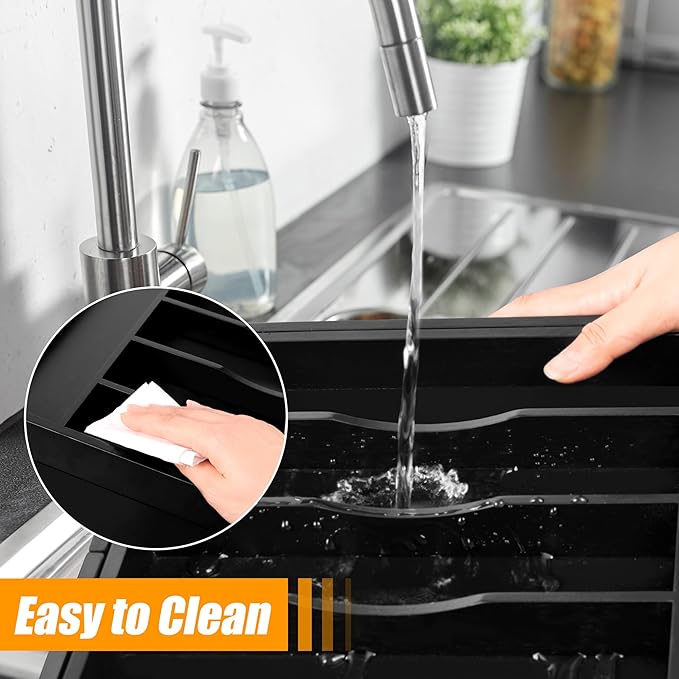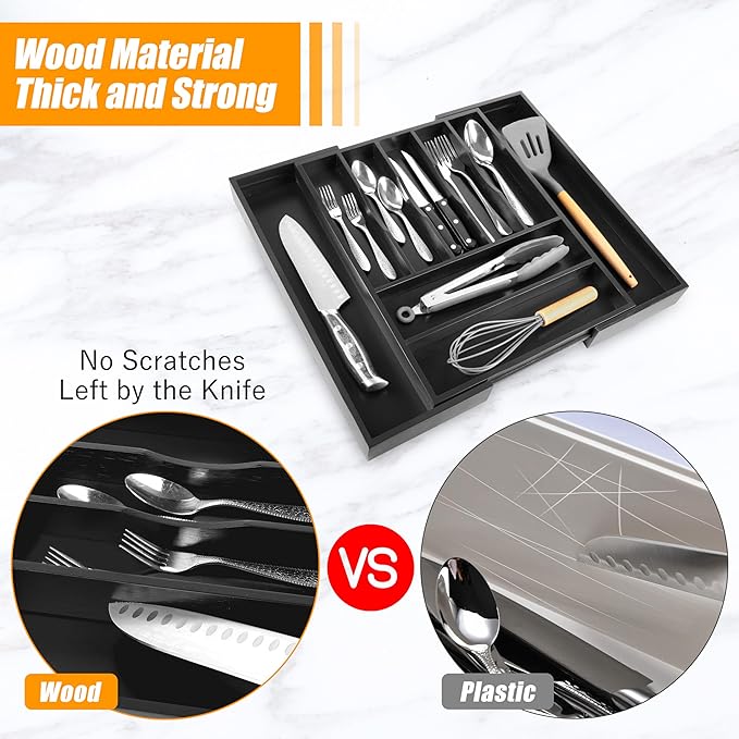 - ✅【Quality - Deep Compartments & Reinforced Base】Our utensil drawer organizer features compartments with a depth of 1.9 inches, helping maximize drawer space and perfect for storing more essential tools and gadgets. The utensil silverware drawer organizer comes with a reinforced base, ensuring durability for long-term use, and is ideal for supporting the weight of heavy-duty utensils and knives. Keep everything you need conveniently at hand while cooking, neatly visible, and easy to grasp when preparing the next meal in the kitchen.