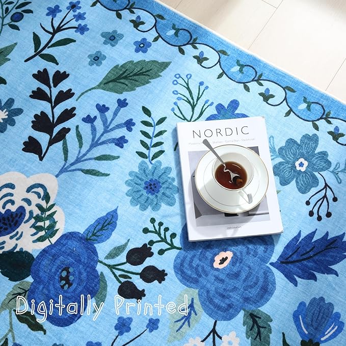 Door Mat Indoor Entrance 2x3 Rug Machine Washable Boho Floral Small Area Rug Non-Slip Low Pile Throw Rugs for Entryway, Kitchen, Front Door Indoor Entrance, Entry, Kids Room (Blue)