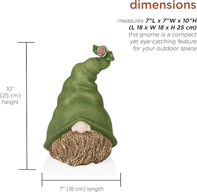 • PLAYFUL DESIGN: This cute gnome features a vibrant flower on his green hat, enhancing the natural beauty of your outdoor space. The sculpted rope beard adds an extra layer of detail, making it a unique and fun garden accent.
