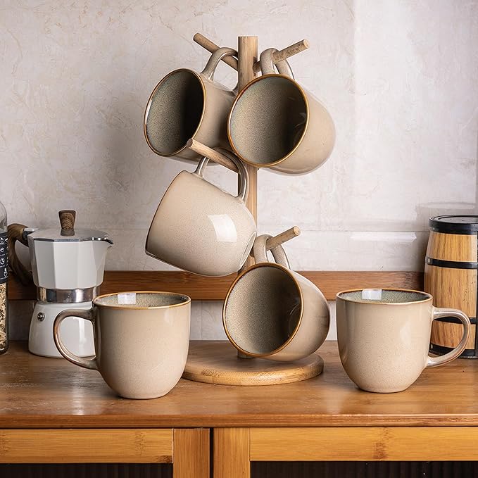 - UNIQUE DESIGN: Our mugs feature a hand-finished reactive glaze that creates a beautiful, one-of-a-kind look. The color variations add to the charm and character of each piece, making them a stunning addition to any kitchen or dining room.