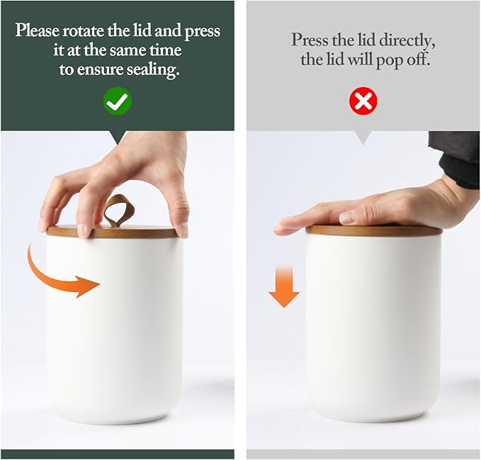 • Saving Kitchen Space - Ceramic canister is designed with convenient handle, canister sets for kitchen counter are great for holding coffee beans, sugar, cereal, cookies, tea or even flour. Making your kitchen cabinet and counter well organized.