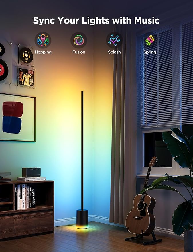 - RGBICWW Technology and Brightness: Enjoy multi-color displays, 1725 lm brightness (higher than previous models), and adjustable 2200 K to 6500 K warm/cool whites. This RGBIC floor lamp caters to diverse daily lighting needs like reading, working, and relaxing.