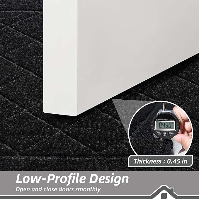 - Stylish and Low Profile Design: Fashionable geometric patterns are suitable for most kinds of home dÃĐcor. Our doormats measure 24" x 36" x 0.45", low-profile design and reinforced overlock edges to ensure that doors won't get stuck or the door rug go curling. Note: Please confirm the height of the door gap before purchasing