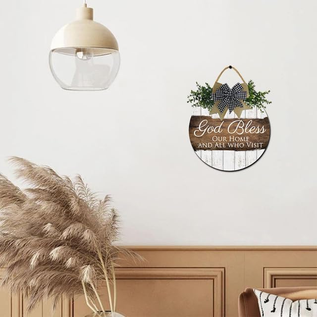 FemiaD God Bless This Home and All Who Enter Sign for Front Door Funny Wreaths Hanging Wooden Plaque Decoration Round Rustic Wood Farmhouse Porch Decor for Home Front Door Decor 11inch