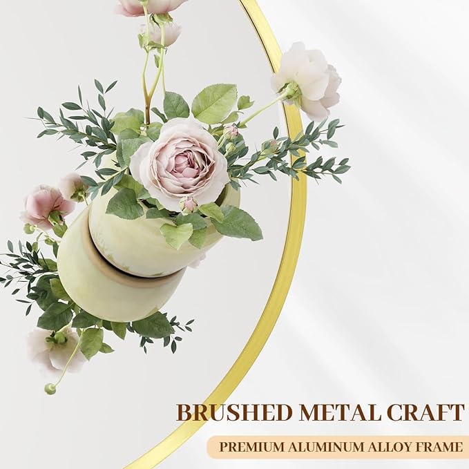 • Modern Brushed Frame Design: 42-inch gold circle mirror is crafted of an aluminum alloy metal sleek frame, making it ideal for bathroom mirror, entrance mirror, vanity mirror, living room mirror