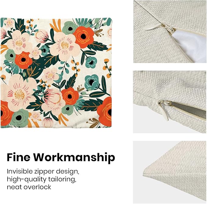 - 【Spring Pillow Covers】 Our floral throw pillow covers 16x16 inch are made of excellent breathable polyester linen fabric. The cream decorative pillow covers is durable, soft and skin-friendly. The plant outdoor pillow covers adopt exquisite edging technology and four sides of our floral pillow covers are sewn firmly, which is not easy to open the line.