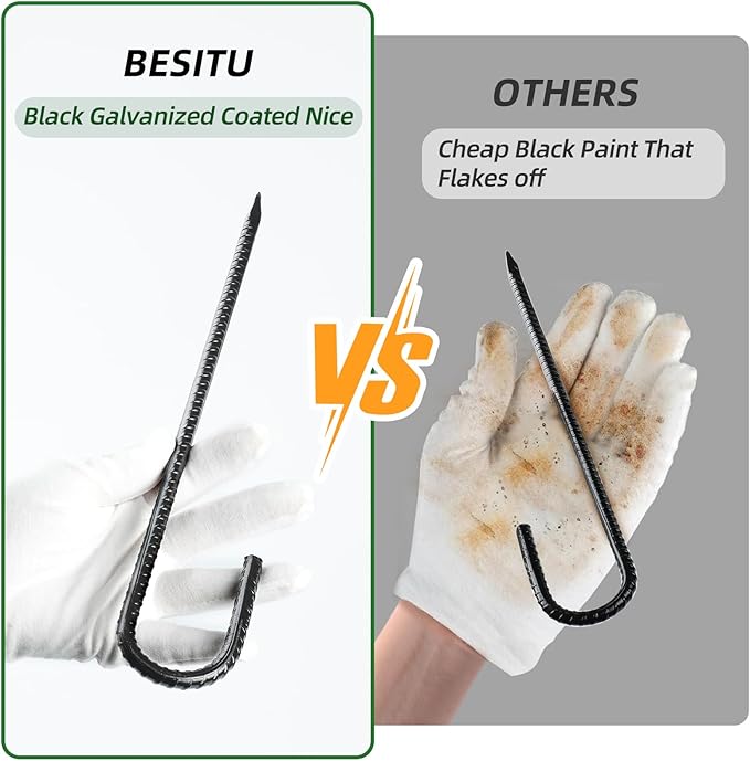 - 【TWO YEAR WARRANTY】16-pack j hook rebar stakes. Order Besitu metal stakes today, you would love it! If not, please feel free to contact us, we would provide the best solution within 12 hours.