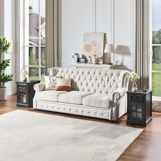 - 🔋【Side Table with Charging Station】Low battery? Don't worry. This end table comes with 2 AC outlets, 2 USB ports and a 6.56ft power cord for your charging needs. You can easily charge mobile phones and other devices as you need. Faster charging efficiency, stabler charging and no damage to your devices!