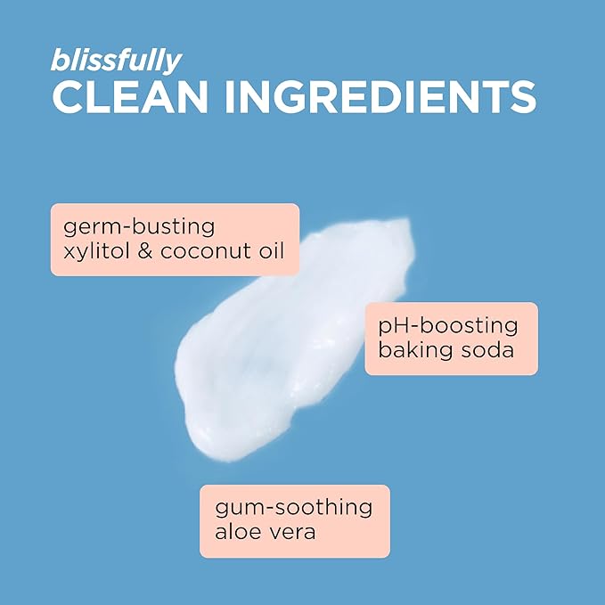 • THOUGHTFULLY MADE FORMULA: Every ingredient was chosen for its efficacy, including microbiome-frinedly xylitol, pH-balancing baking soda, soothing aloe vera and more. No triclosan, peroxide, sulfates, parabens, propylene glycol, or artificial dyes.