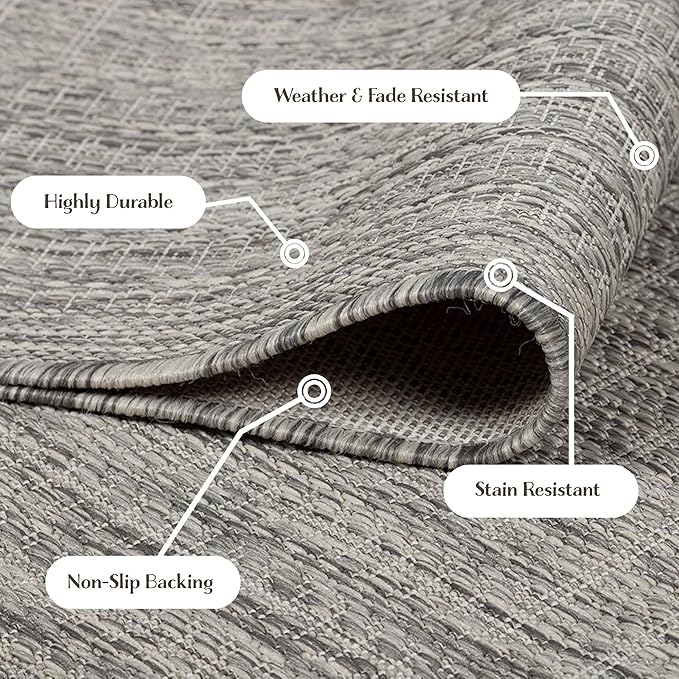 Adiva Rugs Outdoor Indoor Area Rug, Weather Resistant, Easy to Clean, Stain Resistant Floor Mat for Dining Room, Backyard, Deck, Patio (Silver Weiss, 2'6" x 7')