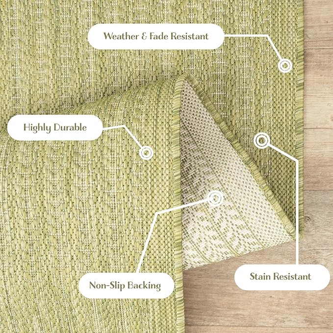 Adiva Rugs Outdoor Indoor Area Rug, Weather Resistant, Easy to Clean, Stain Resistant Floor Mat for Dining Room, Backyard, Deck, Patio (Olive Weiss, 2'6" x 7')