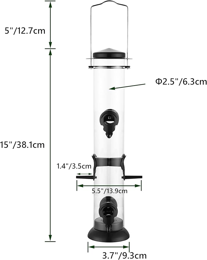 - 【Fit For Small bird,No More Issues With Big Birds Hogging】Design for Small birds and 1.5” perch and feeding port only fit for small birds which them use easily,like Chickadees, Titmice, Sparrows, Finches. No more issues with blue jays and doves hogging the feeder!