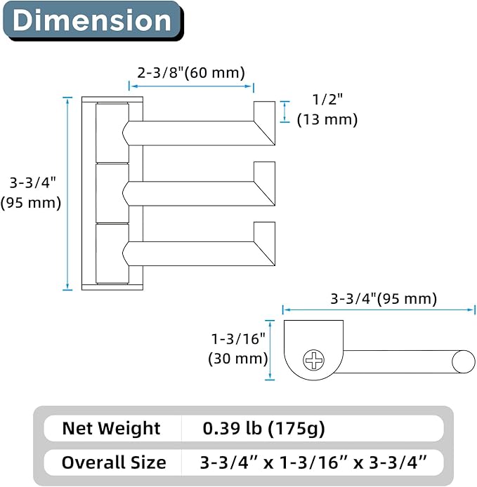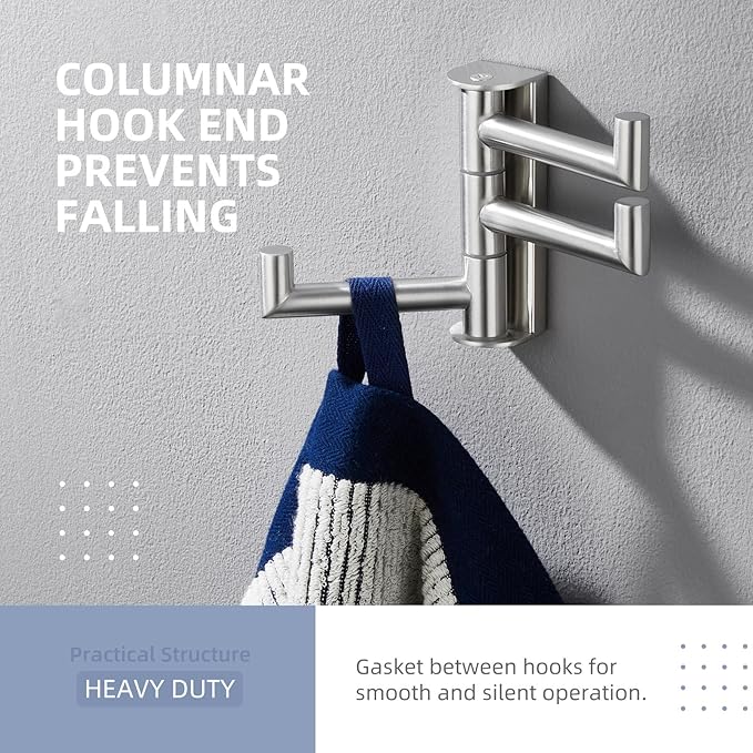 • ADD EXTRA STORAGE: swivel towel hook is a life-efficient accent, with 3 arms allowing for at least 3 items to be hung at once, which not only eliminates clutter but also saves space