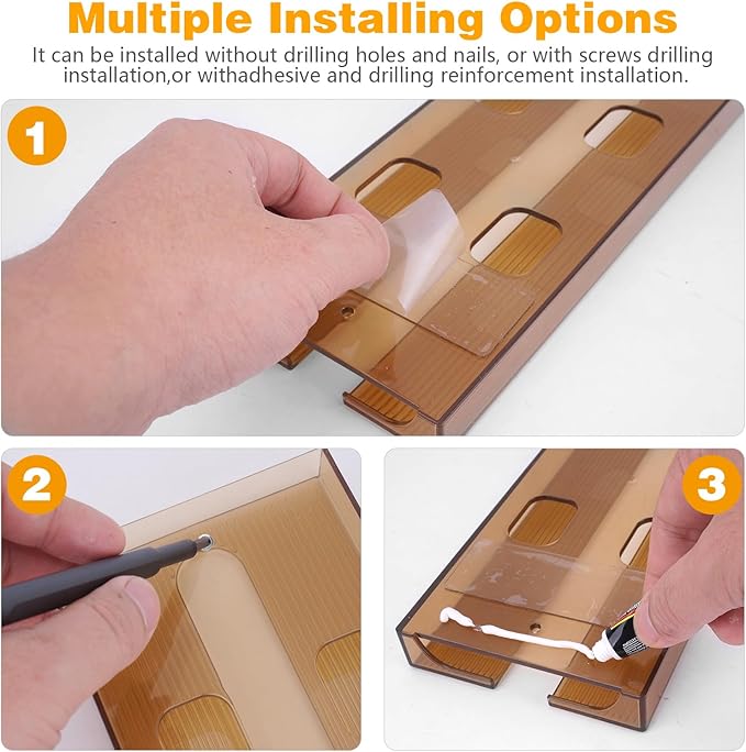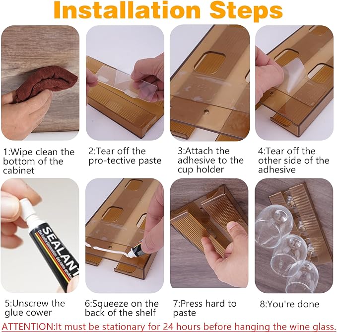 • Easy to Install:The wine glass rack is equipped with self-adhesive adhesive, Punch-free,easy to install,Due to the different materials of cabinets,suggest installing the screws
