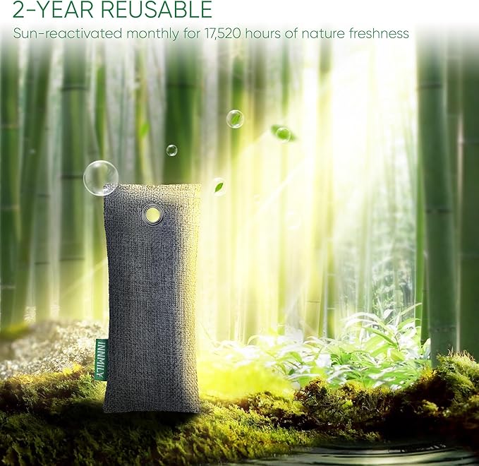 - REVOLUTIONIZE HOME'S AIR QUALITY WITH 2-YEAR CONTINUOUS FRESH AIR - Deodorizer odor eliminator bags provide an 17,520 hours of deodorizing power, effortlessly rechargeable with a monthly sunbath. Ideal for bedrooms, drawers, and beyond, these activated charcoal odor absorber for strong odor offer a sustainable and cost-effective choice