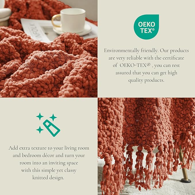 • PREMIUM DURABLE QUALITY: Woven from high-density yarns, this decorative throw resists shrinking, wrinkling, and fraying – even after repeated washes. The reinforced tufted details and hand-tied fringe stay intact for long-term use, while the lightweight build ensures easy draping.