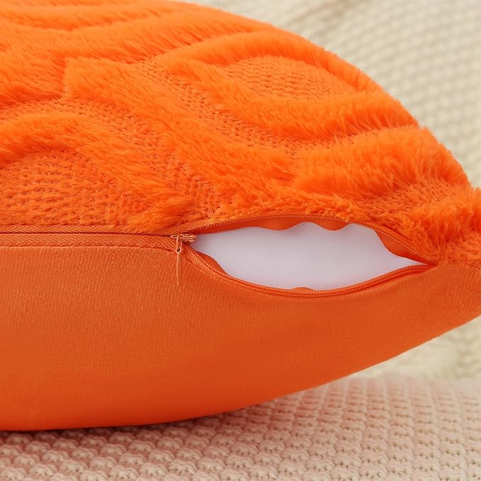 decorUhome Fall Throw Pillow Covers 20x20 Inch Set of 2, Soft Plush Decorative Faux Fur Orange Solid Couch Pillow Covers, Accent Farmhouse Neutral Square Euro Pillow Cases for Sofa Bed Living Room