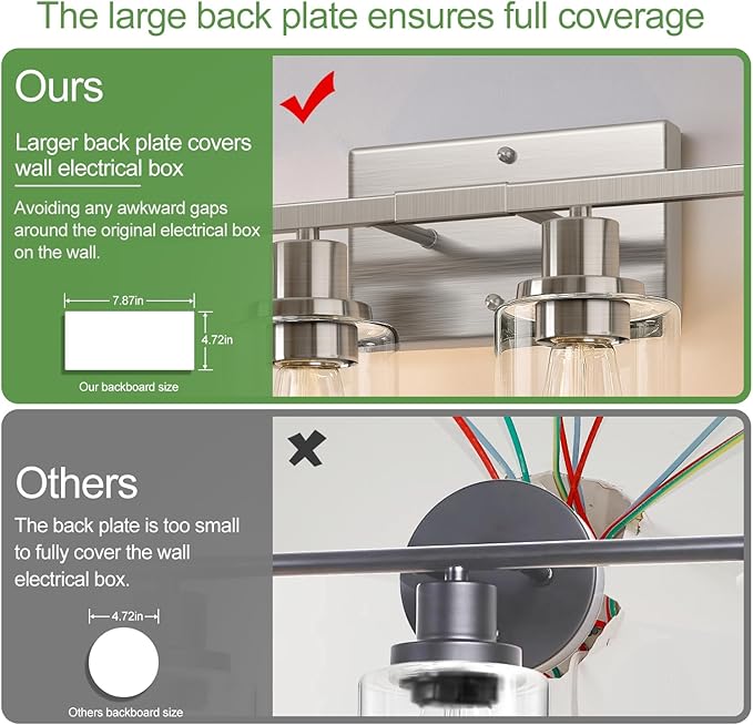 • Timeless Brushed Nickel Design - Enhance your space with this 4-light bathroom fixture, featuring a brushed nickel metal body and thick clear glass shades. Its sleek, modern design complements farmhouse, contemporary, and traditional decor, making it a versatile and stylish addition to any room.