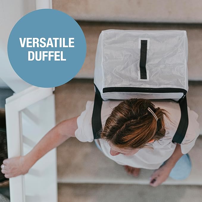 • MULTIPLE CARRYING OPTIONS: Features long tote handles, backpack straps, and easy grab handles on either end. This duffel bag is perfect for various use cases, from carrying groceries and laundry to packing for vacations.