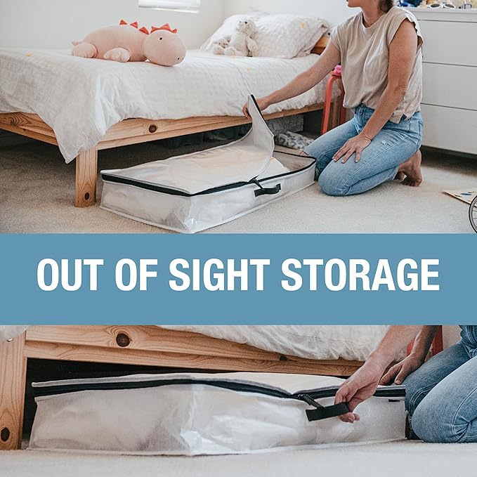 • AMPLE CAPACITY: The CleverMade Storage Slide offers a generous 46-liter capacity, measuring 33" L x 17" W x 5" H when open. Ideal for maximizing under-bed storage space, and the transparent material makes it easy to recognize what's stored within!
