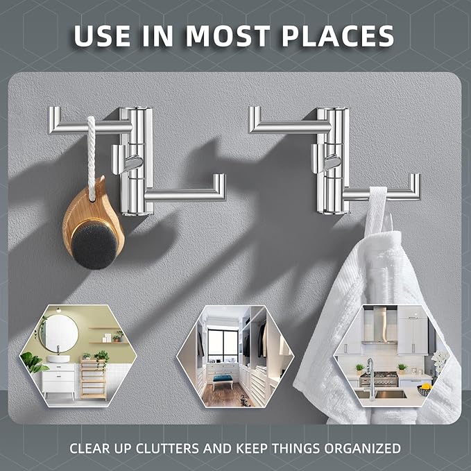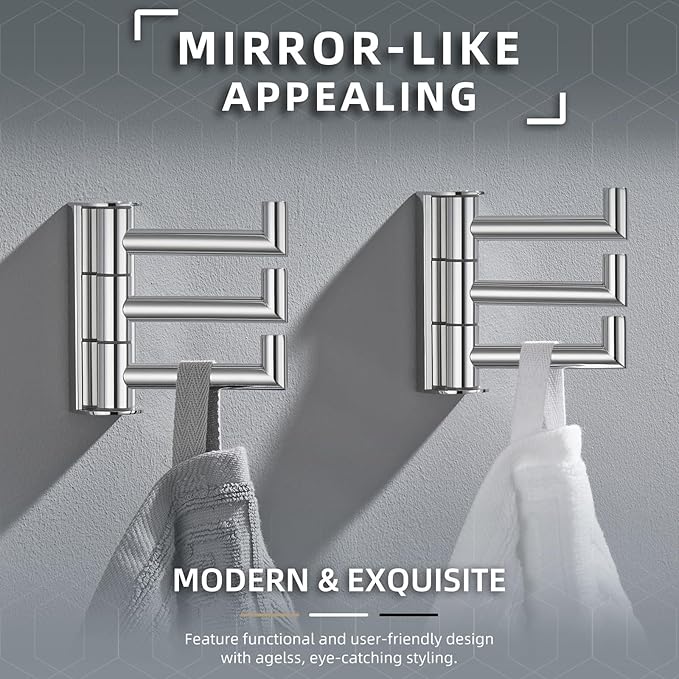 • KEEP NEATNESS: swivel towel hook with 3 arms allowing for at least 3 items to be hung at once as an organization helper, which not only eliminates clutter but also saves space
