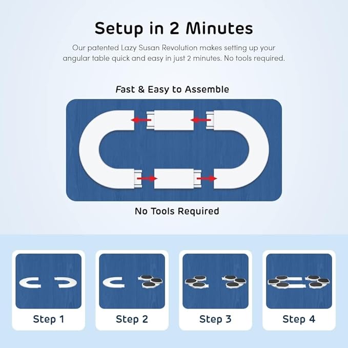 - â° 2 MINUTE ASSEMBLY - Our easy-to-assemble, easy-to-use, and easy-to-clean extra-large lazy susan is the perfect addition to your dining room table. No tools are needed to assemble. Plus we've designed our box specifically for storing your lazy susan turntable quickly and easily after meals.