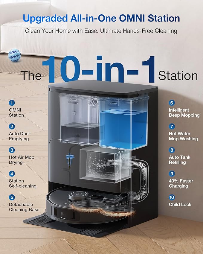 - Special Feature : 11000Pa Unbeatable Suction, 158â Hot Water Auto Mop Washing, Innovative ZeroTangle Technology, TruEdge Adaptive Edge Mopping Technology, Upgraded All-in-One Station 11000Pa Unbeatable Suction, 158â Hot Water Auto Mop Washing, Innovative ZeroTangle Technology, TruEdge Adaptive Edge Mopping Technology, Upgraded All-in-OnâĶ See more