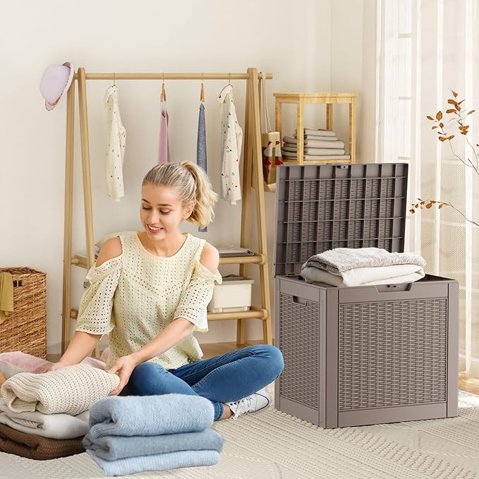• Wicker Design: This resin storage box features a wicker pattern design, making it an excellent decoration for patios, gardens, yards, porches, and poolside areas.