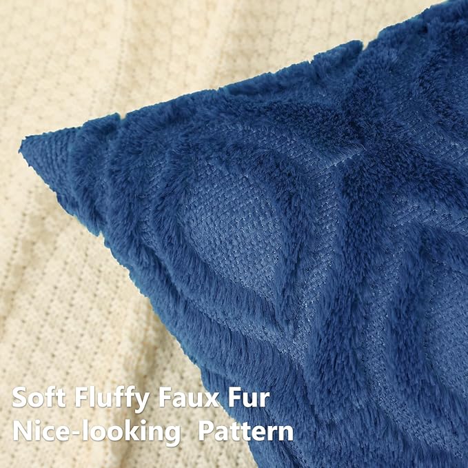 decorUhome Fall Throw Pillow Covers 26x26 Inch Set of 2, Soft Plush Decorative Faux Fur Dark Blue Solid Couch Pillow Covers, Accent Farmhouse Neutral Square Euro Pillow Cases for Sofa Bed Living Room