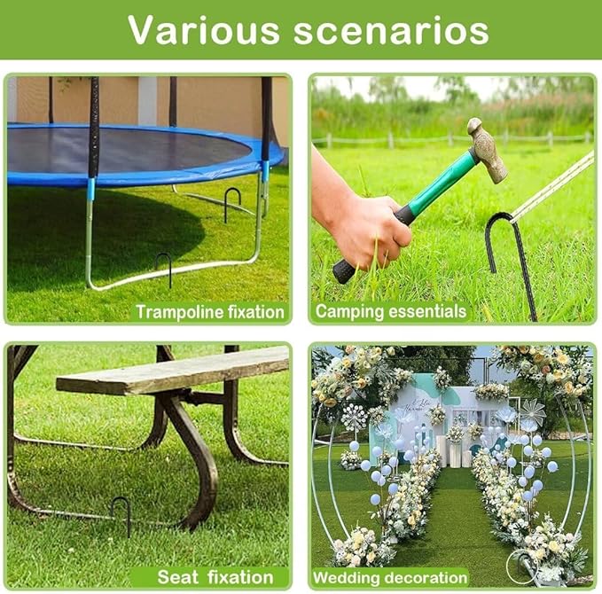 • 【Multiple Scenes】: Our rebar stakes are built to withstand a variety of outdoor elements, perfect for stabilizing your tent, trampoline, dog fence, deer feeder, outdoor water pipe, keeping you stable on any adventure.
