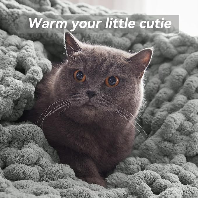 Chunky Knit Throw Blanket, 30''*40'' Knitted Throw Chenille Yarn for Bed Couch, Handmade Light Grey Crochet Big Thick Blanket, Machine Washable Cute Comfy Blanket for Home Decor