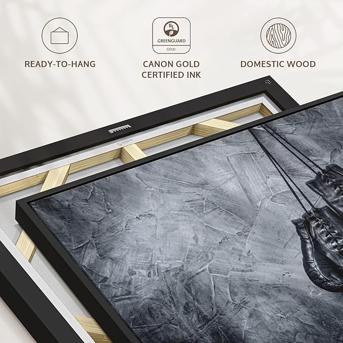 ElephantStock Boxing Gloves Wall Art - Horizontal Framed Canvas - 1-Piece Living Room Wall Decor - Photography Sports Canvas Print - Black and Gray Decor for Wall - 19" X 13"