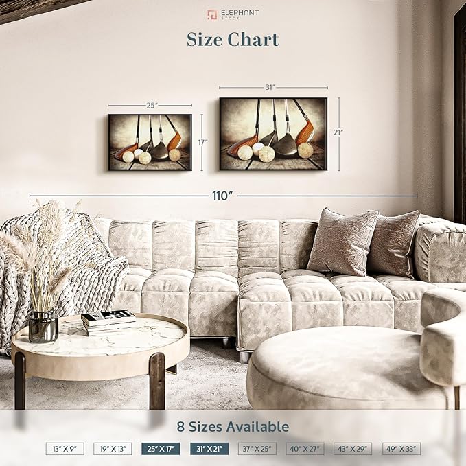 • Durable Canvas Features - Our long-lasting other sports 1-Piece canvas is made from a non-fading UV and Humidity-resistant 330 GSM Polyester Canvas. This Golf Sets canvas can be used as a masculine mancave wall art.