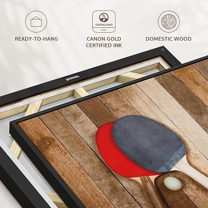 • Durable Canvas Features - Our long-lasting racket sports 1-Piece canvas is made from a non-fading UV and Humidity-resistant 330 GSM Polyester Canvas. This Wooden Ping Pong canvas can be used as a minimalist living room wall art.