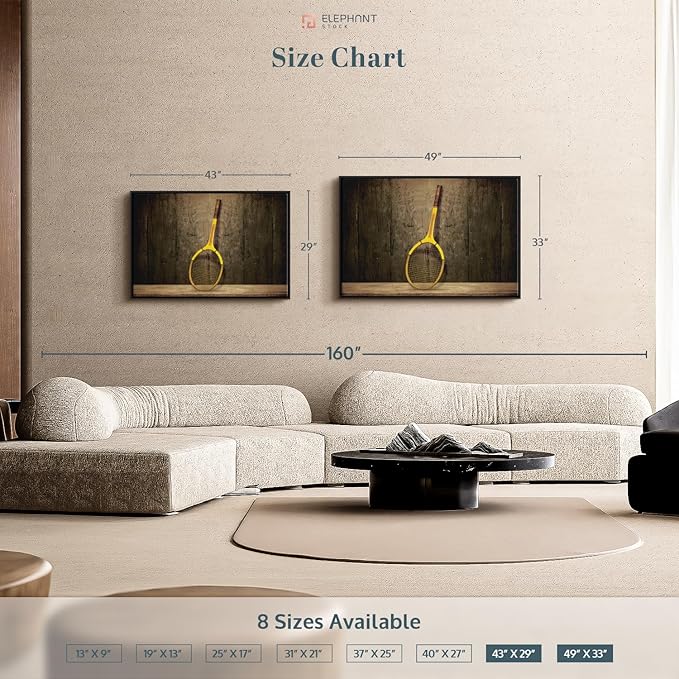 • Durable Canvas Features - Our long-lasting racket sports 1-Piece canvas is made from a non-fading UV and Humidity-resistant 330 GSM Polyester Canvas. This Vintage Tennis Racket canvas can be used as a modern living room wall art.