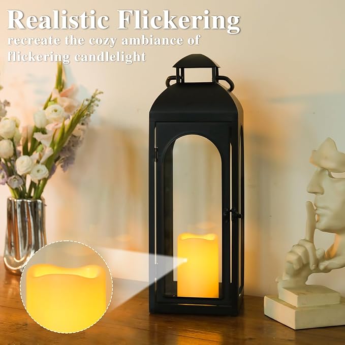 • Convenient Remote Control: Use the included remote control to easily turn the candle on and off without lifting the base of the lantern. (The remote control has a short use distance, so please use it closer)