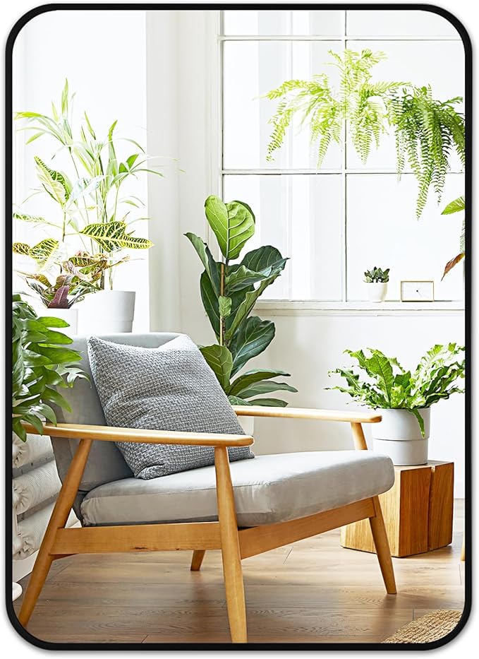 Fabuday Black Bathroom Mirror for Over Sink - 20x28 Rounded Rectangle Wall Mirror, Matte Metal Framed Vanity Rectangular Mirrors for Bedroom, Living Room, Entryway Decor, Horizontally/Vertically