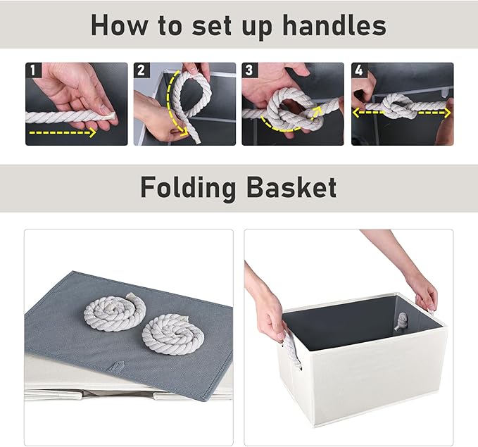 • 【Decorative Storage Bins for Closet with Handles】These cloth storage bins for closet organization are made with soft leather handles for easy carrying, and the neutral beige color shelf organizer bins are suitable for any room decor
