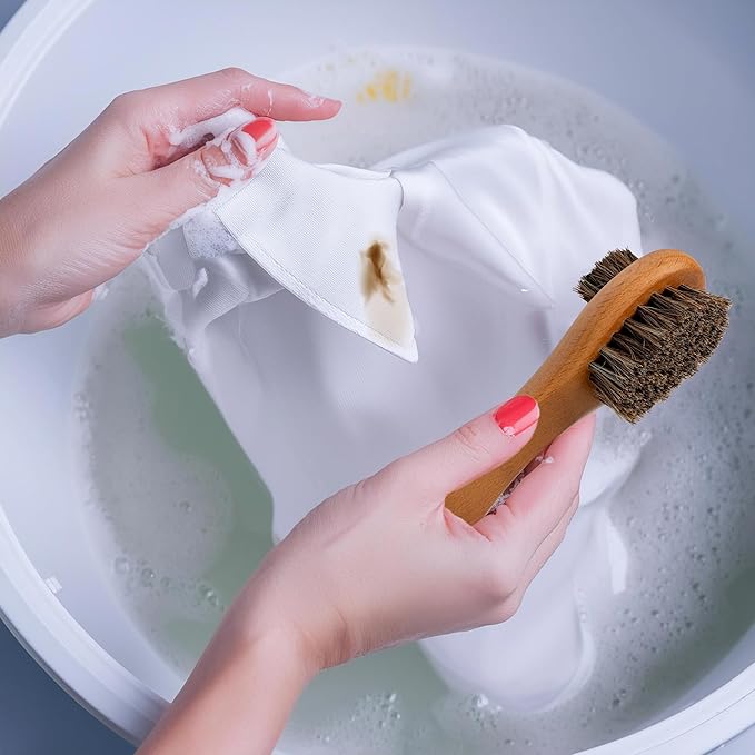 - Superior natural horsehair performance: More flexible and effective than standard nylon brushes, our genuine horsehair bristles excel at lifting spots and scrubbing stains from diverse fabrics like cotton, denim, velvet, polyester, leather, and nylon without causing damage.