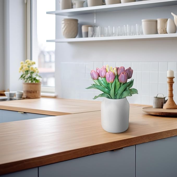 • [Low Maintenance]: Compared to real flowers, fake tulips require minimal upkeep. faux tulips won't wilt, offering a long-lasting decorative option. There's no need for watering, pruning, or sunlight, making them perfect for busy individuals or environments where real plants struggle to thrive.