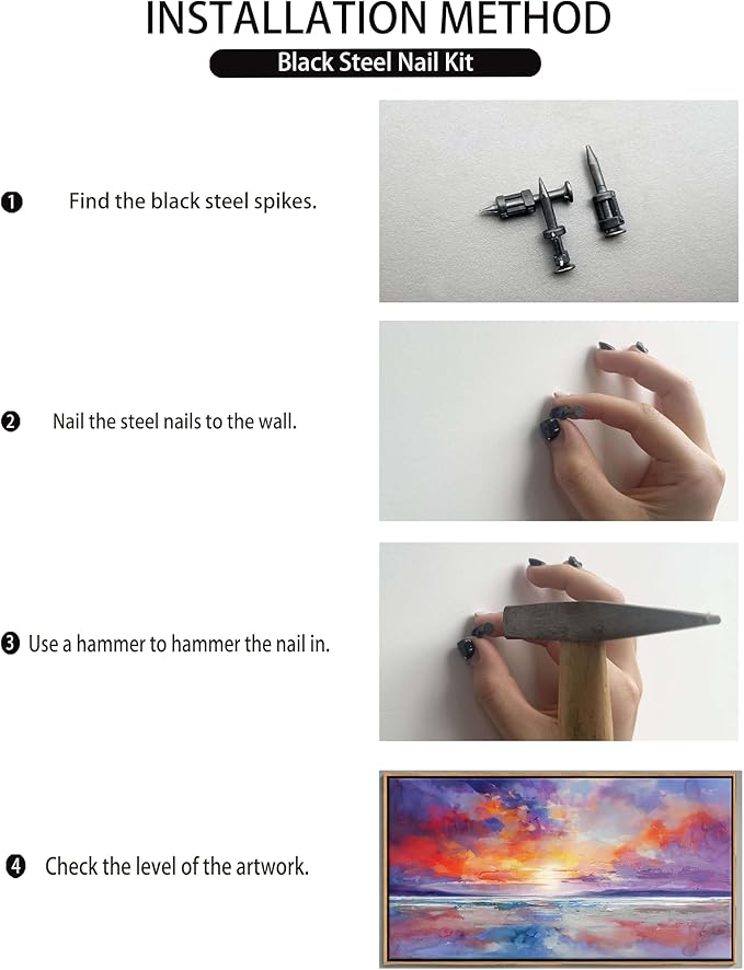 • Each panel comes with a convenient black hook for easy hanging. Make sure to measure your wall space properly and choose the right size for a perfect fit.